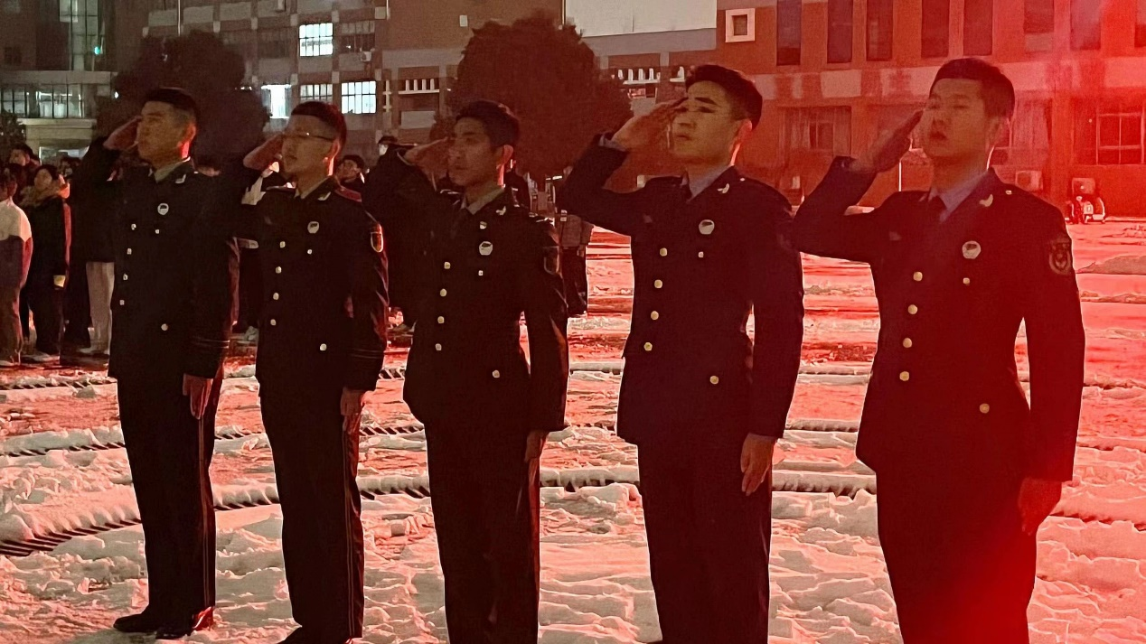 升旗仪式在纷飞的雪花中落下帷幕。相信革命先烈们看到当今之中国一定深感骄傲。我们应铭记耻辱,铭记南京大屠杀这段悲哀的历史。珍惜当下,砥砺前行,为实现中华民族伟大复兴的中国梦贡献青春和力量。