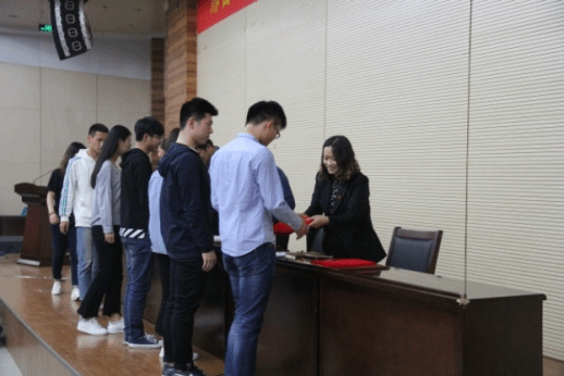 新发展的共青团员在本次大会上进行了庄严的入团宣誓仪式,大会尾声,参加表彰大会的全体人员合唱中国共产主义青年团团歌--《光荣啊!中国共青团》,在激昂的乐曲中,大会圆满落幕。