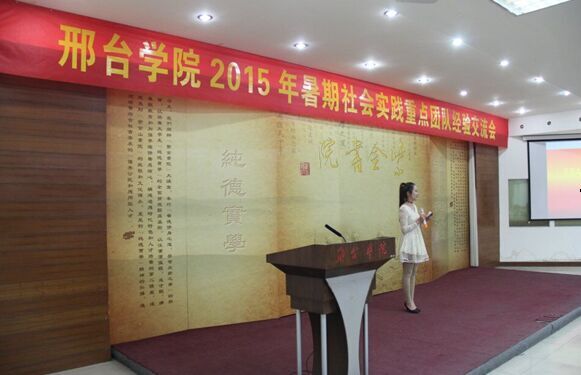 10月30日,“邢台学院2015暑假社会实践重点团队经验交流会”在图书馆学术报告厅隆重举行。党委常委徐惠敏、团委书记学生处处长刘志涛、团委副书记张盈利及各院(系部)团委书记、带队老师和部分学生共同参加了本次交流会。