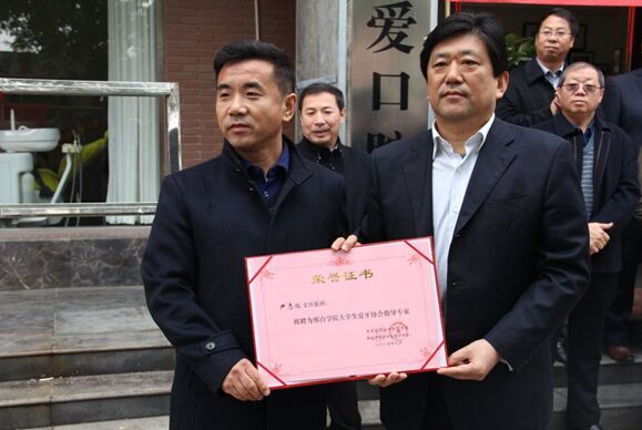 原邢台学院院长边守正和尹志欣院长为邢台学院大学生爱牙协会教育基地揭幕。
