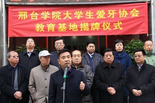 11月8日上午,邢台学院大学生爱牙协会教育基地揭幕仪式在邢台市桥东区顺德路博爱口腔医院隆重举行。原邢台学院院长边守正、河北省民营口腔副会长尹志欣院长及邢台学院校团委书记学生处长刘志涛等领导出席了本次揭幕仪式。